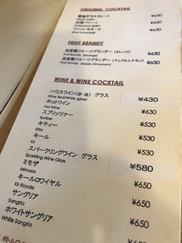 メニューとしては、普通のカフェのメニュー以外にアルコールやちょっとしておつまみになるようなフードメニューもあり、少しお腹が空いているときやちょっと一杯ひっかけたいときにも使えそうなお店です。しかもお値段がリーズナブル!白ワインのグラス1杯で430円、モーニングセットが500円とか。モーニングセットはボリュームがあって美味しそうなサンドイッチにスープ、ドリンクが付いてこの値段ですからかなりコスパがいいと思います。食べログの口コミでもそのような投稿が多数ありました。朝は8時から営業しているようなので、今度は朝にモーニングセットを食べに行ってみようかと思います。